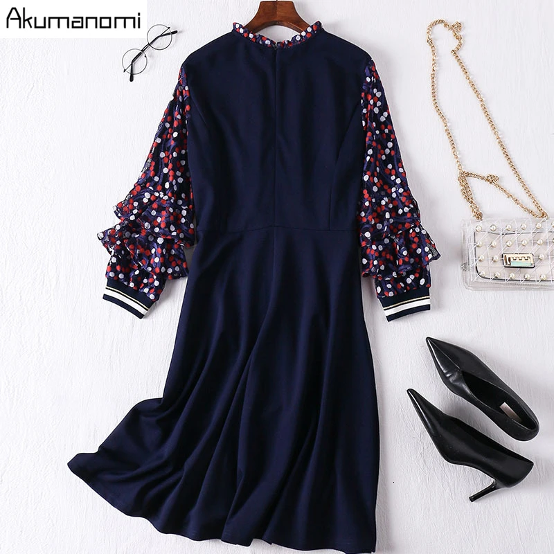 Review Top Autumn Spring Dress Women Plus Size 5xl Ruffled Lace Long Sleeve Blue Casual Party Office Elegant D