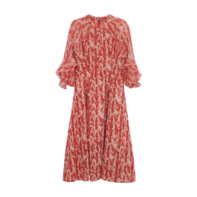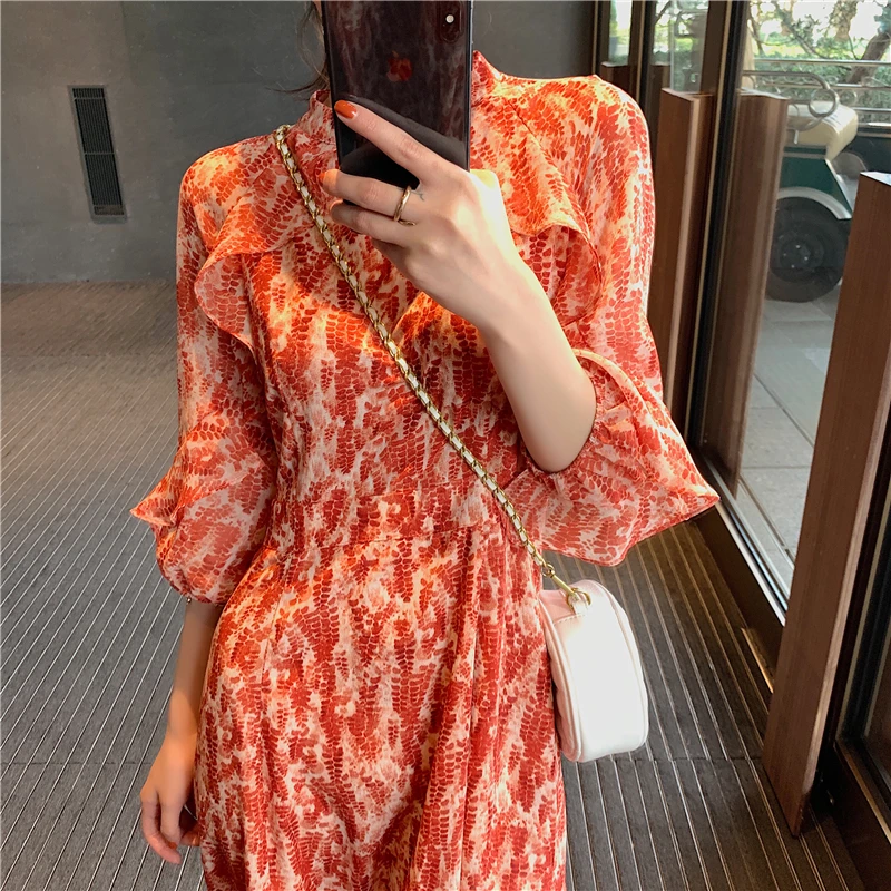 HOT SALE Vintage French Women Summer Dress Floral Printed Half Sleeve Elegant Hight Waist Petal Sleeve Sweet
